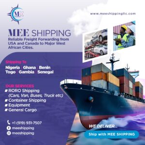 MEE SHIPPING is your trusted partner for shipping goods to Lagos, Nigeria, and across West Africa. We provide reliable freight forwarding services to neighboring countries, including Ghana, Benin, Togo, Gambia, and Senegal, ensuring your cargo reaches its destination smoothly. We understand that different cargo needs require flexible solutions. That’s why